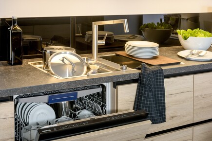 Dass man den Backofen statt zu Boden auch ergonomischer, nämlich in Brusthöhe, einbauen kann, hat sich ja mittlerweile herumgesprochen. Aber denken Sie mal weiter: Was ist mit dem Geschirrspüler? Hier muss man sich doch eigentlich viel häufiger bücken, wenn es darum geht, alles Geschirr ein- und auszuräumen. Daher macht auch hier ein halbhoher Einbau wirklich Sinn.