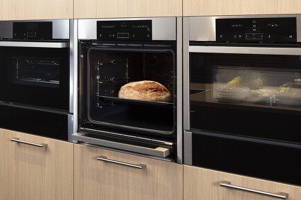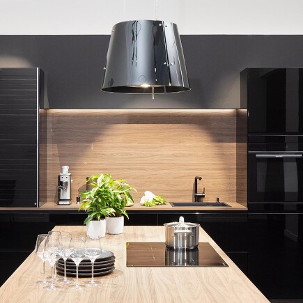 Der Trend zum Schwarz hält an und sorgt dafür, dass auch die Gerätehersteller möglichst viel schwarz gestalten, das früher noch silbern hervorblitzte: Ehemalige Edelstahlelemente werden entweder durch schwarze ersetzt oder weggelassen und kommen mit griffloser Gestaltung aus, bei der sich Gerätetüren durch Antippen oder auf Zuruf öffnen. Letzteres hilft, Fingerabdrücke zu vermeiden, denn gerade wenn die Ausführung in Schwarzglas erfolgt, werden sie störend sichtbar.